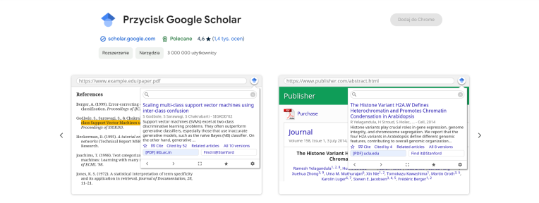 Rozszerzenie to jest polecane, ma ocenę 4,6 gwiazdki i zostało użyte przez ponad 3 000 000 użytkowników. Zostało zaprojektowane, aby pomóc badaczom, którzy polegają na zasobach akademickich. Może być naprawdę pomocne dla wydawców poruszających się w dziedzinach, które wymagają szczególnej ostrożności podczas tworzenia treści (takich jak medycyna, bankowość lub inne tematy YMYL). Rozszerzenie to może pomóc Ci szybko znaleźć pełne teksty w sieci po wybraniu tytułu, sformatować odniesienia, a nawet zapisać artykuły w specjalnej bibliotece w celu łatwego późniejszego dostępu. Co ważne, zapisane tam linki działać będą najlepiej, gdy skonfigurujesz je za pomocą ustawień – w takim przypadku może pojawić się potrzeba zalogowania się na konto biblioteczne – wówczas możesz na przykład skontaktować się z lokalną biblioteką.